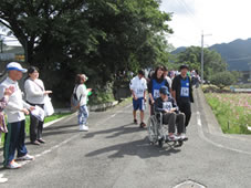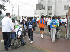 この大会は障がい者の自立へのチャレンジマラソンです。ボランティア活動を通じて、社会一般の障がいに対する理解と認識を深め、身障者の方及び地域住民の方が、ふれあいのなかで明るく助け合い地域活性を目指す目的で行われています。