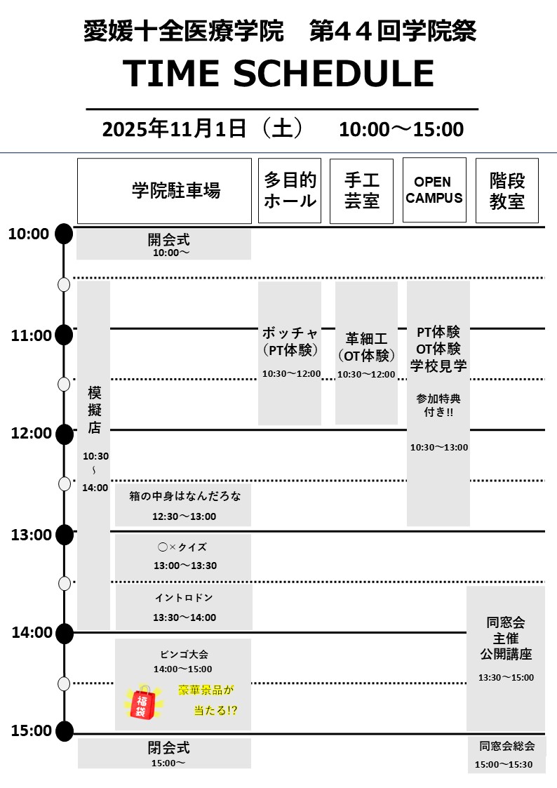 ビンゴ大会、箱の中身はなんだろな、◯×クイズ、イントロドン、フォトスポット・スタンプラリー