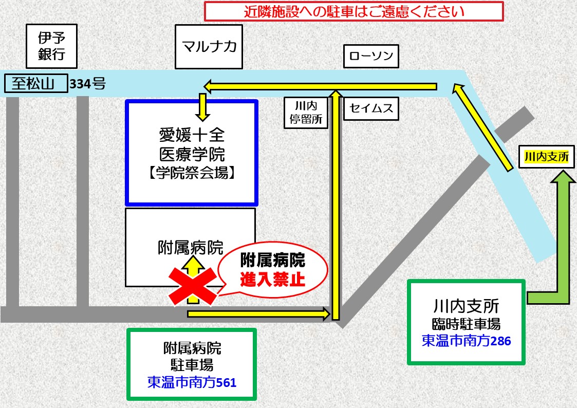 ※感染防止のため、附属病院エリアへの出入りを禁止しております。病院駐車場をご利用の際は、学院側へお回りください。