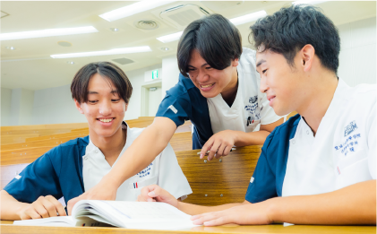 本学院では、各学年に教員2名を配置し、担任・副担任制による教育指導・生活指導を実施しています。学生さんの個々の特性に応じて勉学や生活面をしっかりとサポートするとともに、専門のカウンセラーによる学生相談室も設け、全般的な悩みの相談、アドバイス、指導を行っています。